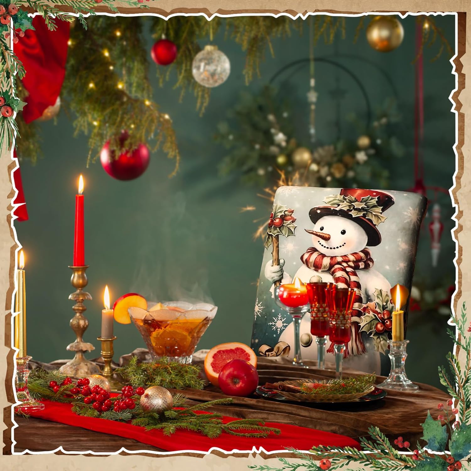 6 Pcs Christmas Dining Chair Covers Removable Washable Stretch Christmas Chair Covers with Santa Claus Elk Snowman Chair Protector Slipcovers for Xmas Kitchen Holiday Party Home Decor