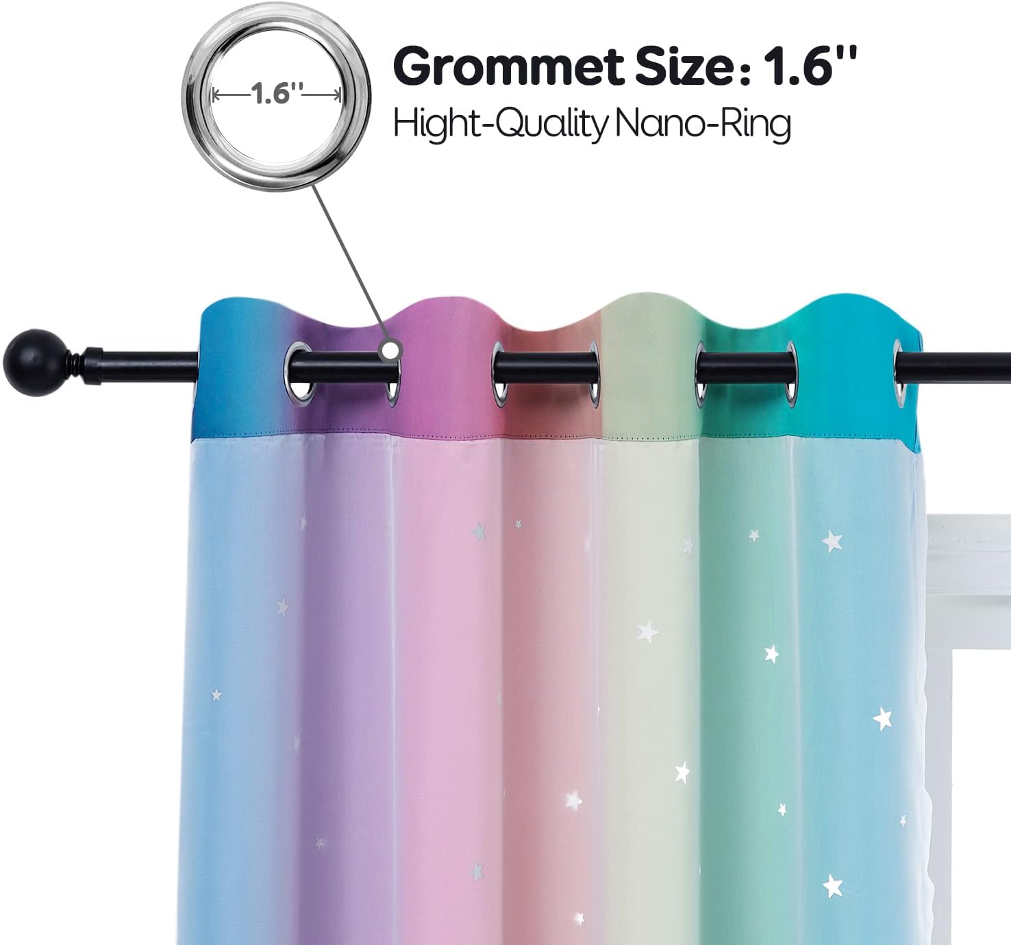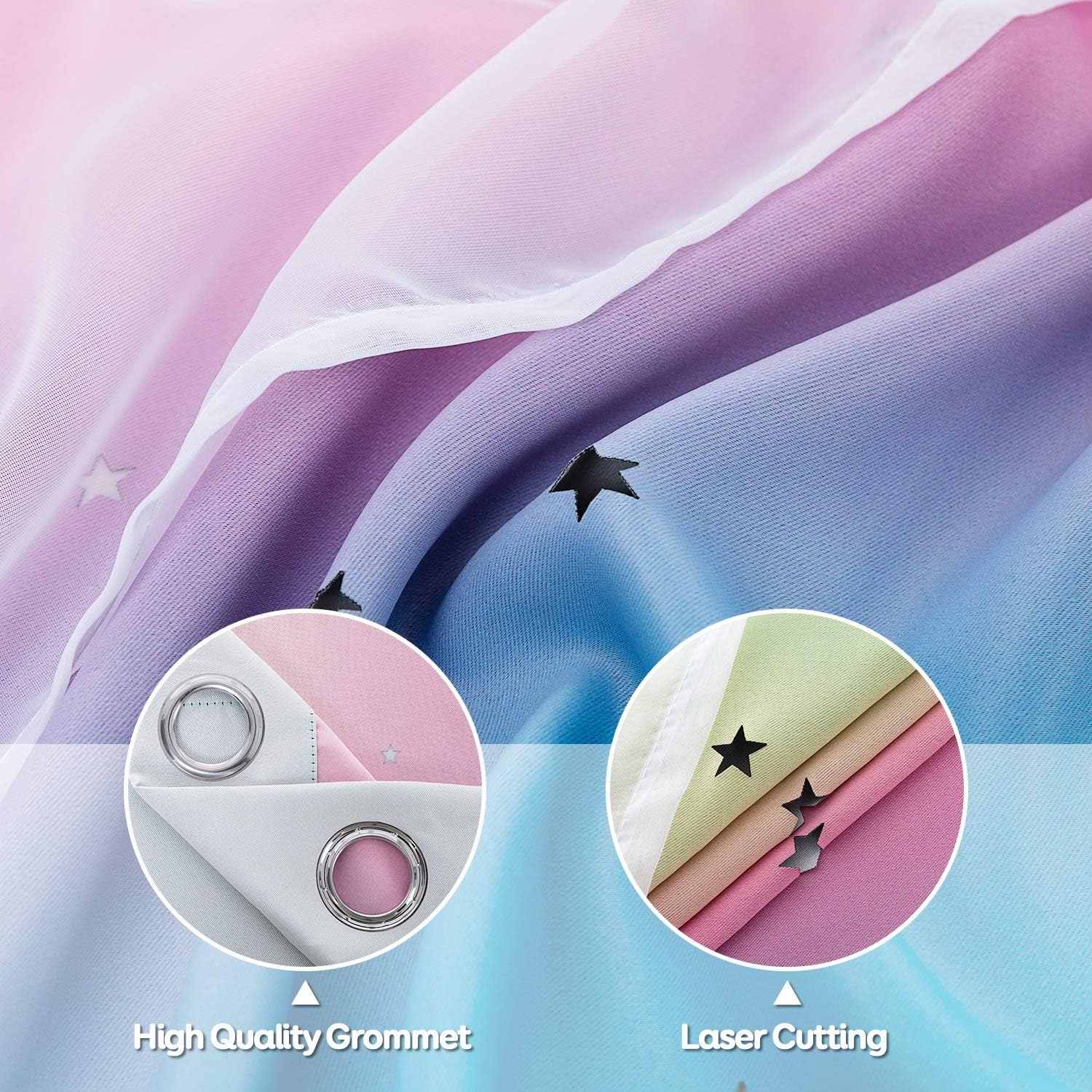 Anjee Star Curtains for Kids 2 in 1 Double Layer Blackout Curtains Grommets Top Star Cutout Rainbow Ombre Curtains with Sheer for Living Room Girls Bedroom 2 Panels 52 x 95 inch, Pink and Yellow
