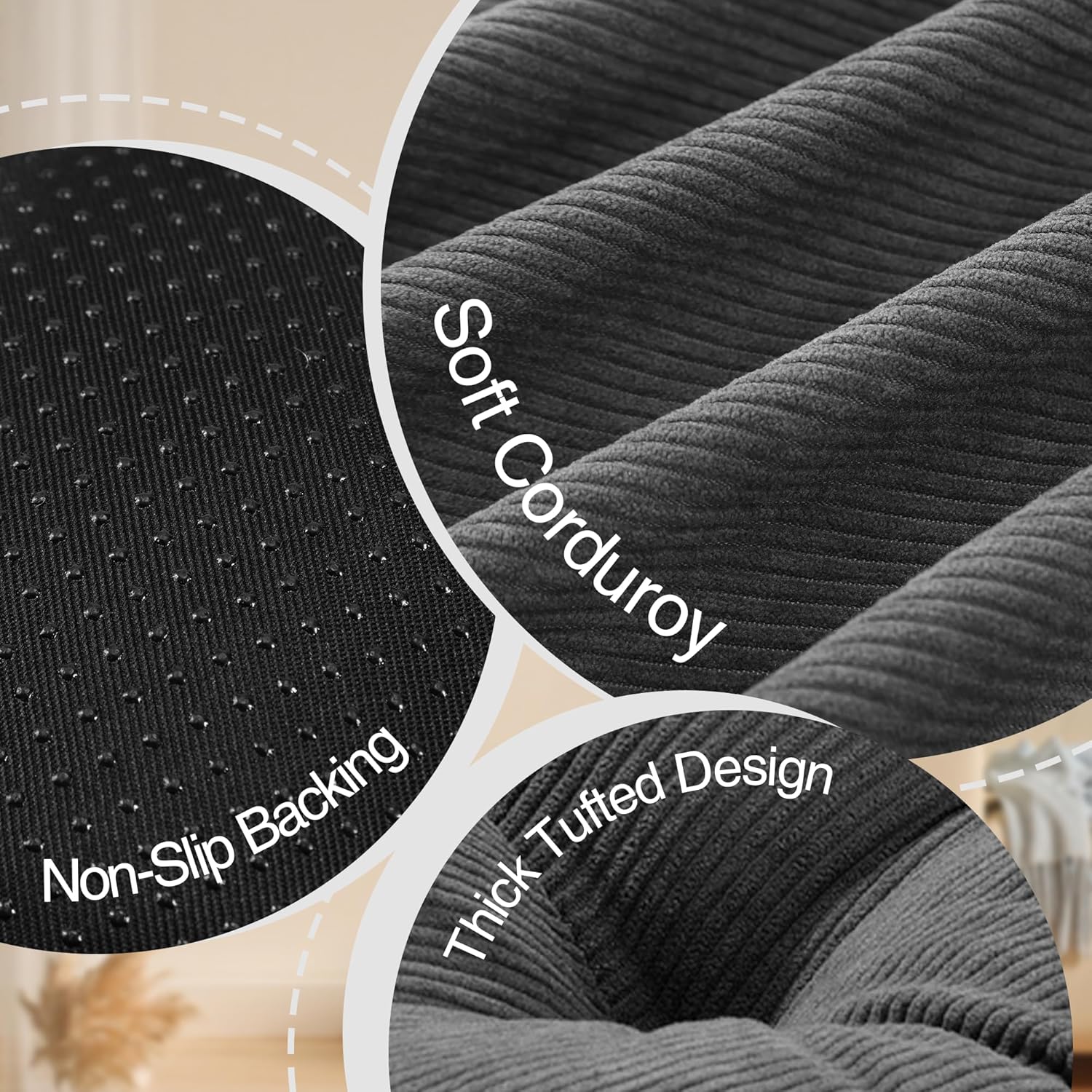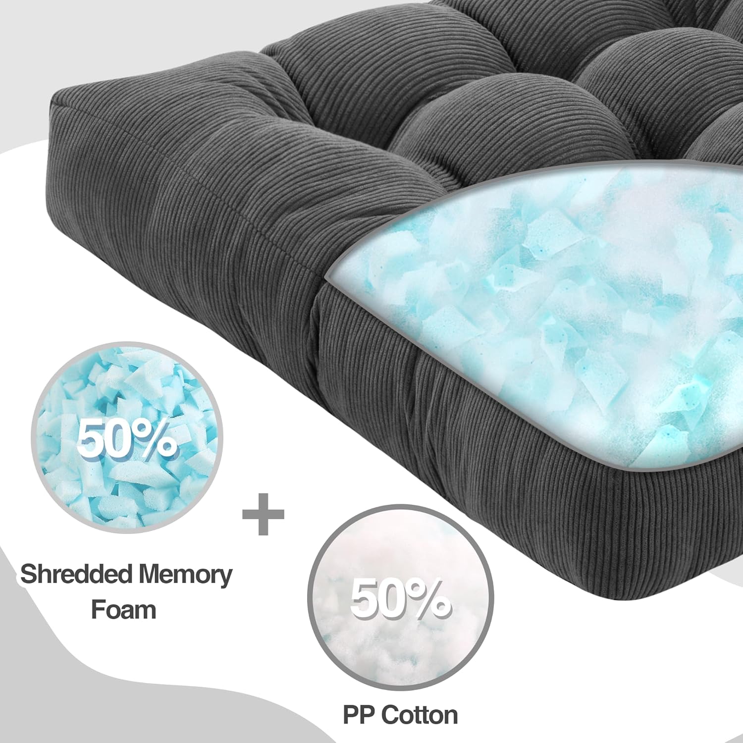 Floor Pillow Cushions for Adults Sitting Large Big Pillows for Floor Seating Square Memory Foam Thick Tufted, 22 x 22 Inch, Set of 2, Dark Grey