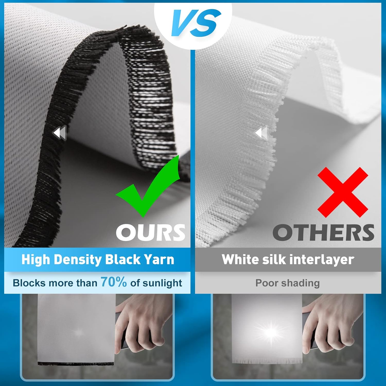 - 70% Blackout, create a better working and sleeping environment for you.