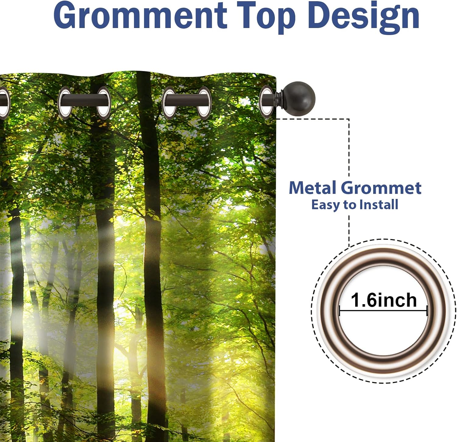 - 8 grommets on 52 inch wide curtain panel. 1.6-inch inner diameter fit well with standard or decor curtain rods.