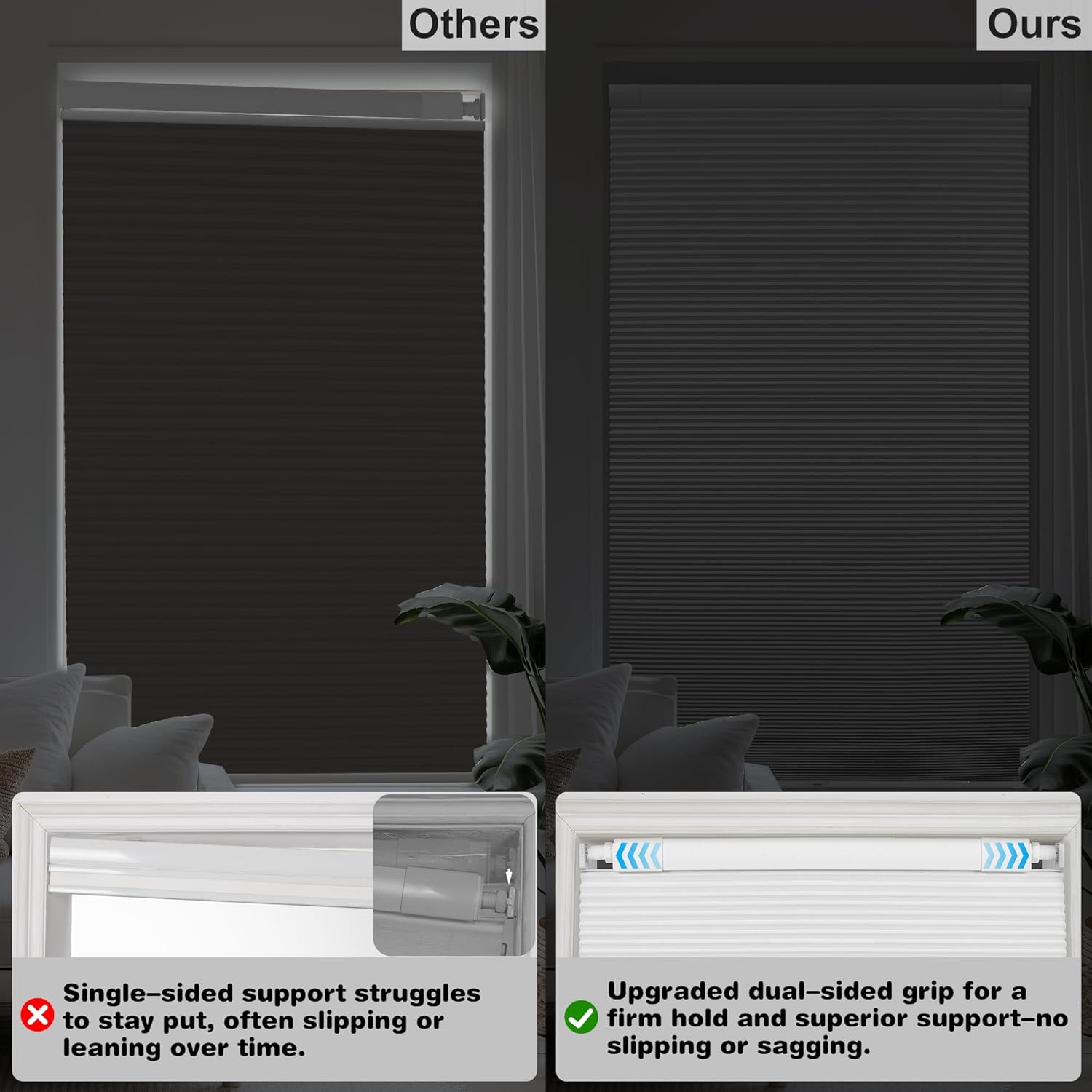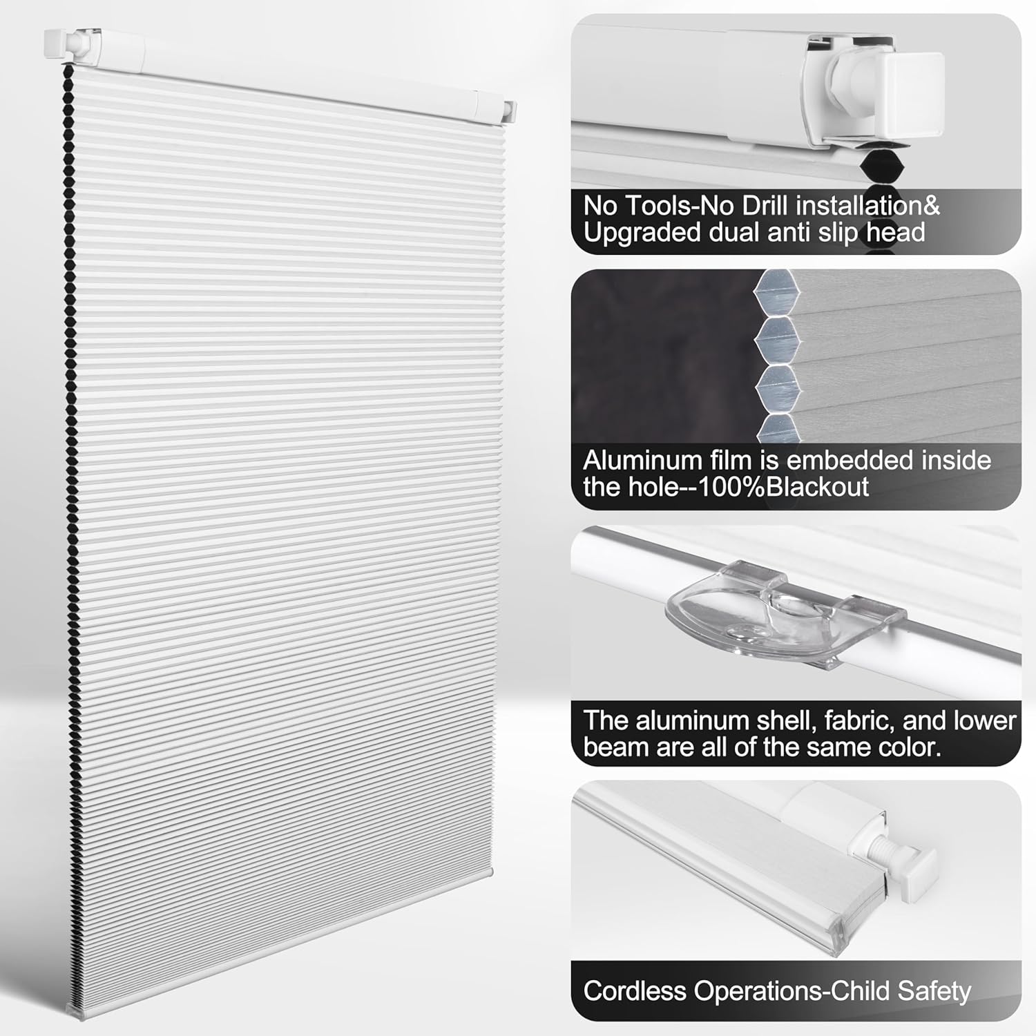 No Drill No Tools Blackout Cellular Shades Easy to Install for Indoor Windows Cordless Honeycomb Blinds Thermal Insulated Noise Reduction,White,Custom Size